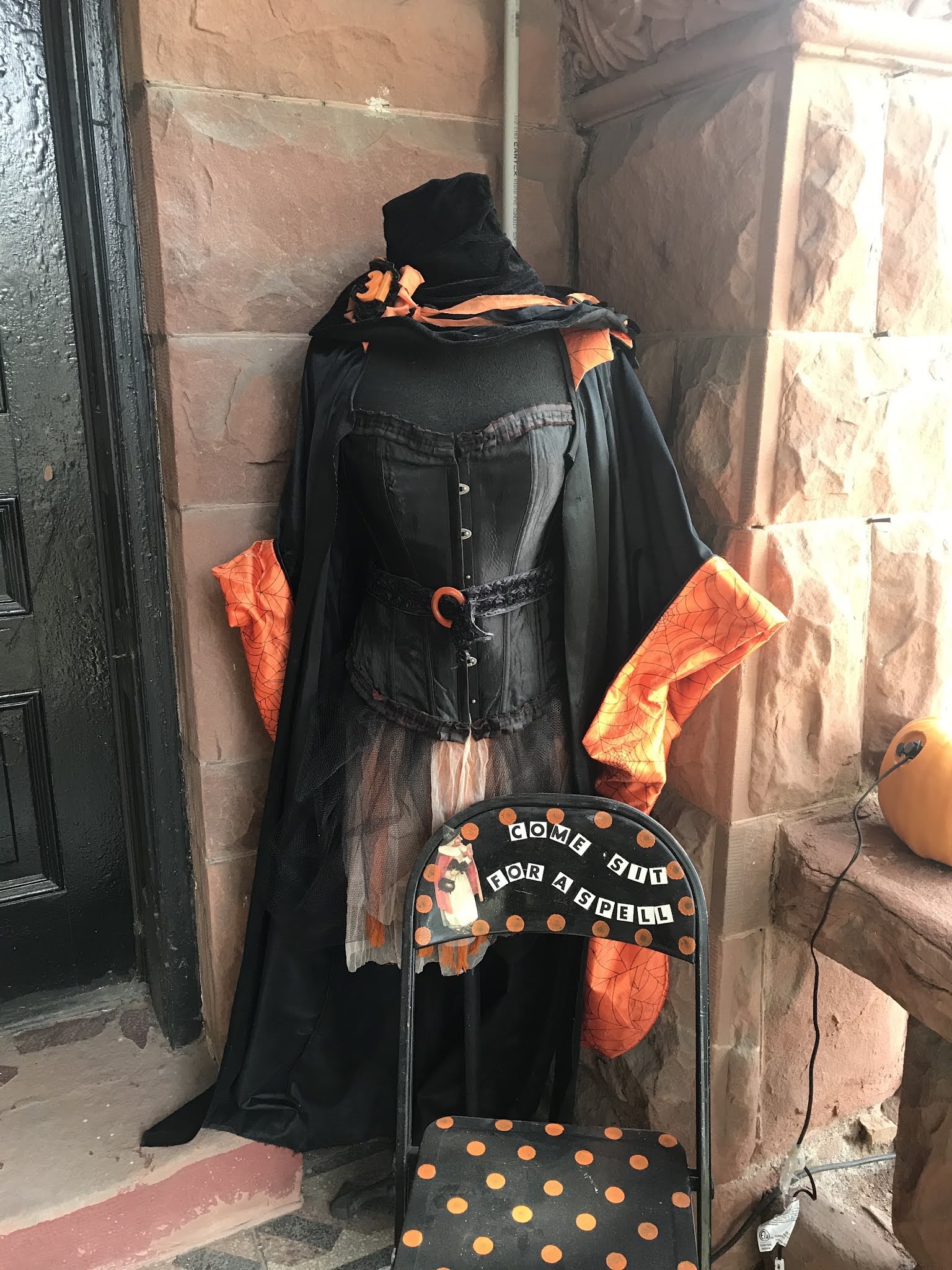 and our witchly mannequin invites you to come and sit for a spell. (I made this chair at the same time I made the one my friend Shirley has on her porch)